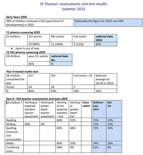 We are proud of the very strong progress pupils make at St Thomas’. By the time they leave the school many children are working at national expectations and at greater depth.